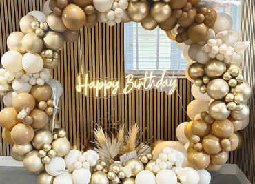 Cette décoration unisexe constituée de ballons beiges, blancs et dorés de diverses tailles crée une ambiance soyeuse à ravir.