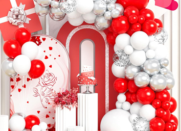 Le rouge riche symbolise la passion et la chaleur tandis que le blanc crée un sentiment de pureté et tranquillité. C'est une combinaison qui vous transporte dans un royaume de rêve, où l'imagination et la créativité s'entrelacent, capturant l'essence d'une atmosphère captivante et enchanteresse. Le paquet comprend des ballons rouge, blanc, argent métallisé et des ballons confettis argentés.