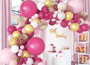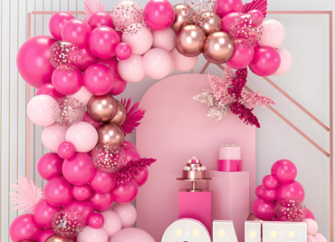 Voici un magnifique camaïeu de rose avec ces ballons roses vifs, roses pastel, roses gold métalliques et rose gold confetti pour plonger dans une atmosphère de douceur.
