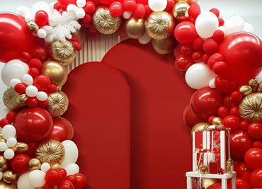 Une constellation de ballons rouges, dorés, blancs et ballons confettis dorés pour une touche de noblesse.