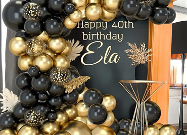 Noblesse oblige ! Que dire de cet élégant assortiment de Ballons Noirs, Dorés et Confettis Or?