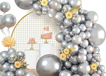 Laissez-vous séduire par la luxueuse sobriété de cette brillante décoration avec des Ballons Argentés de différentes tailles.