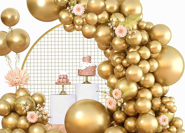 Et que dire de cette éclatante et lumineuse décoration avec des Ballons Or de différentes tailles ?