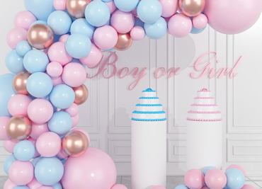 Pour la révélation du sexe de votre bébé, vous pouvez opter pour cet assortiment de grands et petits ballons bleus, roses et or pour votre décoration.