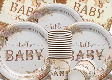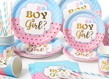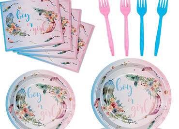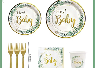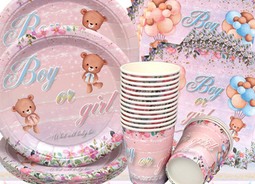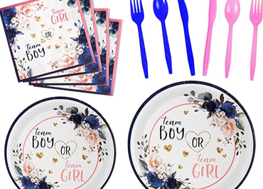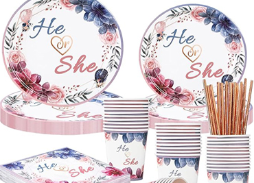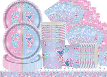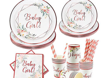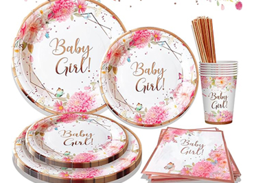 Cet ensemble de vaisselle jetable de 120 pièces pour baby shower fille contient 24 grandes assiettes en papier, 24 petites assiettes en papier, 24 serviettes, 24 gobelets en papier et 24 pailles pour 24 invités.