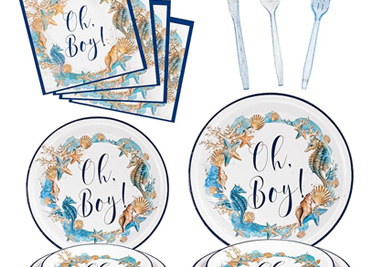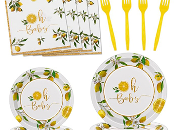 Cet ensemble de vaisselle jetable de 120 pièces contient 24 grandes assiettes en papier, 24 petites assiettes en papier, 24 serviettes, 24 gobelets en papier et 24 pailles pour 24 invités.